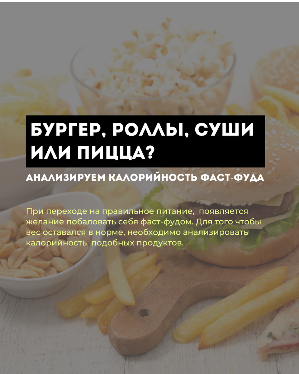 Бургер, роллы, суши или пицца? Анализируем калорийность фаст-фуда