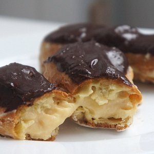 Эклер — продолговатое пирожное из заварного теста с лёгким кремом (как правило, тоже заварным), покрытое глазурью. По-французски éclair — «вспышка», «молния», то бишь есть их нужно быстро, «молниеносно», а вот чтобы приготовить, придётся немного повозиться и... извозиться. :-)