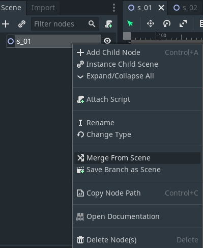 В годо нельзя просто взять и «копипастнуть» ноды из одной сцены в другую. При нажатии комбинации CTRL + C and CTRL + V ничего не произойдет.