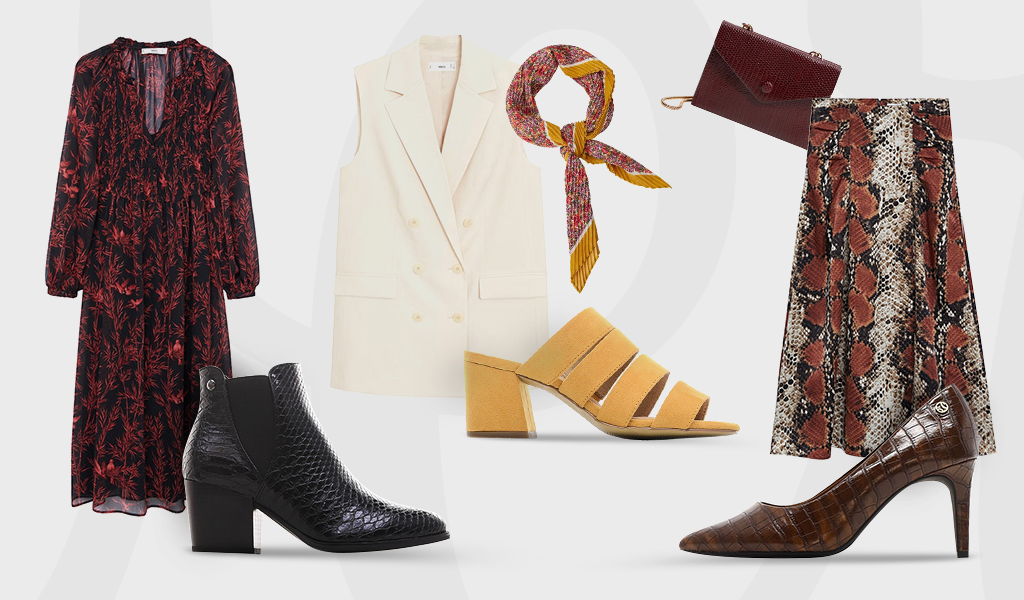 🔥 Юбка с анималистичным принтом и коричневые туфли-лодочки с фактурой змеиной кожи
