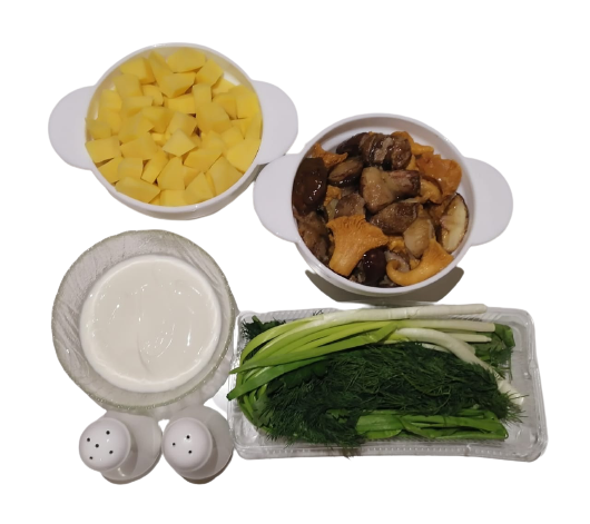 Свежие грибы – 600 гр. (маслята, лисички, белые).