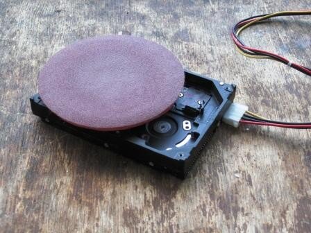 Жесткий диск отслужил своё затем валялся без толку, пока я где-то не увидел подобную конструкцию, ну и решил повторить. Наждачные круги сменные, от болгарки. Девайс можно использовать для притирки и шлифовки радиаторов. Блок питания изготовил на двух КРЕНках 5 и 12 вольт.