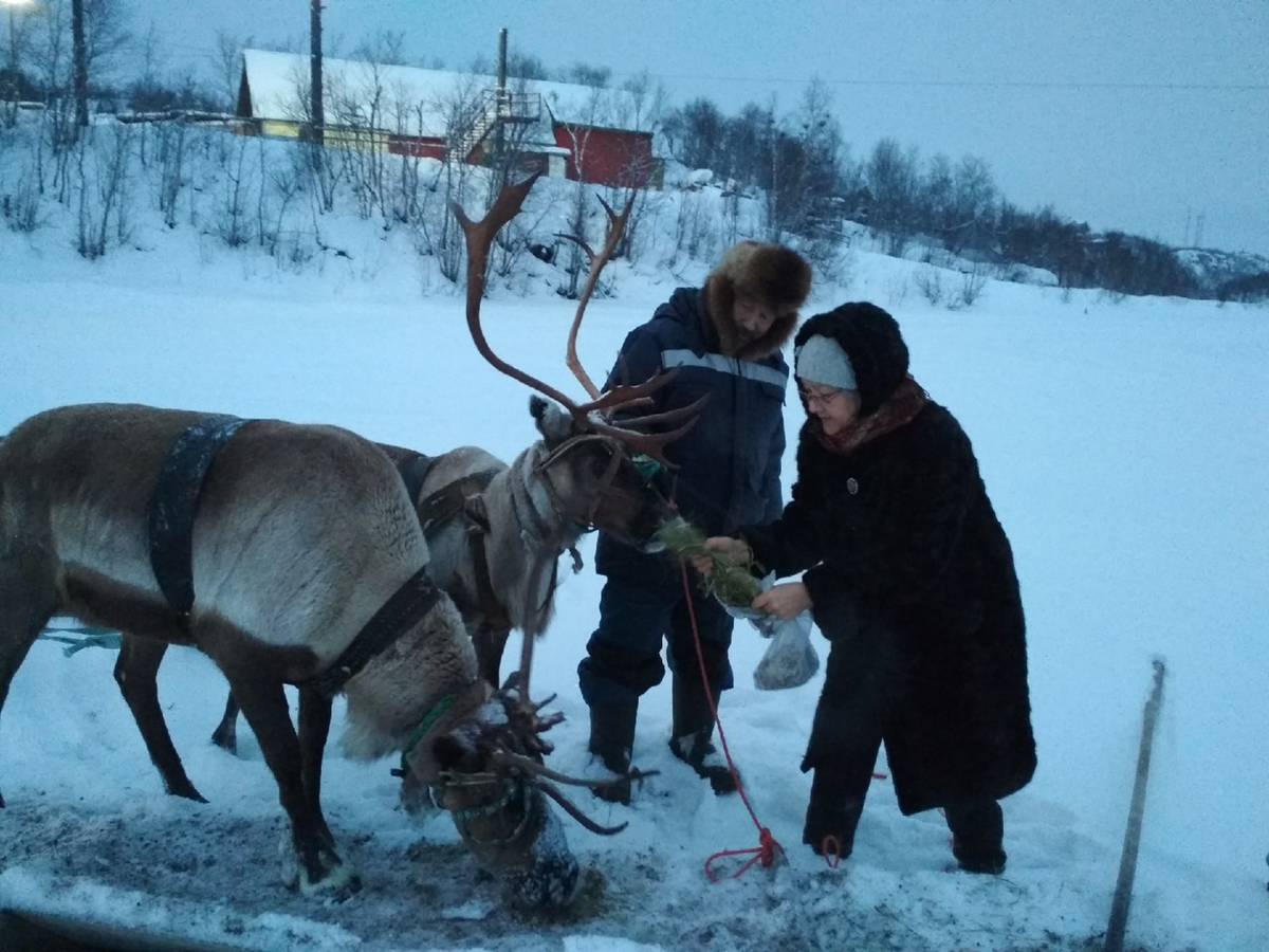 С утра, пока молодёжь каталась на горнолыжном склоне, осваивая сноуборд, мы со сватьей ( это мама моего зятя) покатались на оленях, покормили их ягелем, пообщались с погонщиком- разговорчивым человеком по имени Виталий. Он рассказал, как вместо того, чтобы идти в школу, он ходил пасти оленей.