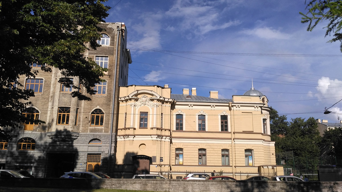 Особняк на улице Писарева, 12, был построен в последнее десятилетие позапрошлого (то есть XIX) века. Многоэтажное здание слева появилось в первом десятилетии XX века и это уже очевидный модерн, а особняк — ещё эклектика: немного от классицизма, немного от барокко. Архитектор один и тот же, Александр Иванович фон Гоген. Но особняк был немного перестроен Виктором Шретером в 1900 году.