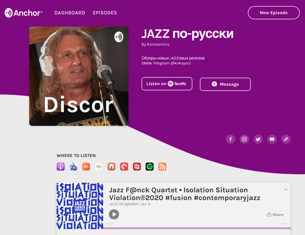 💜Telegram это моя основная площадка, где канал Дискотека и Джаз был создан в 2018 году, но потом изменился на JAZZ по-русски.
