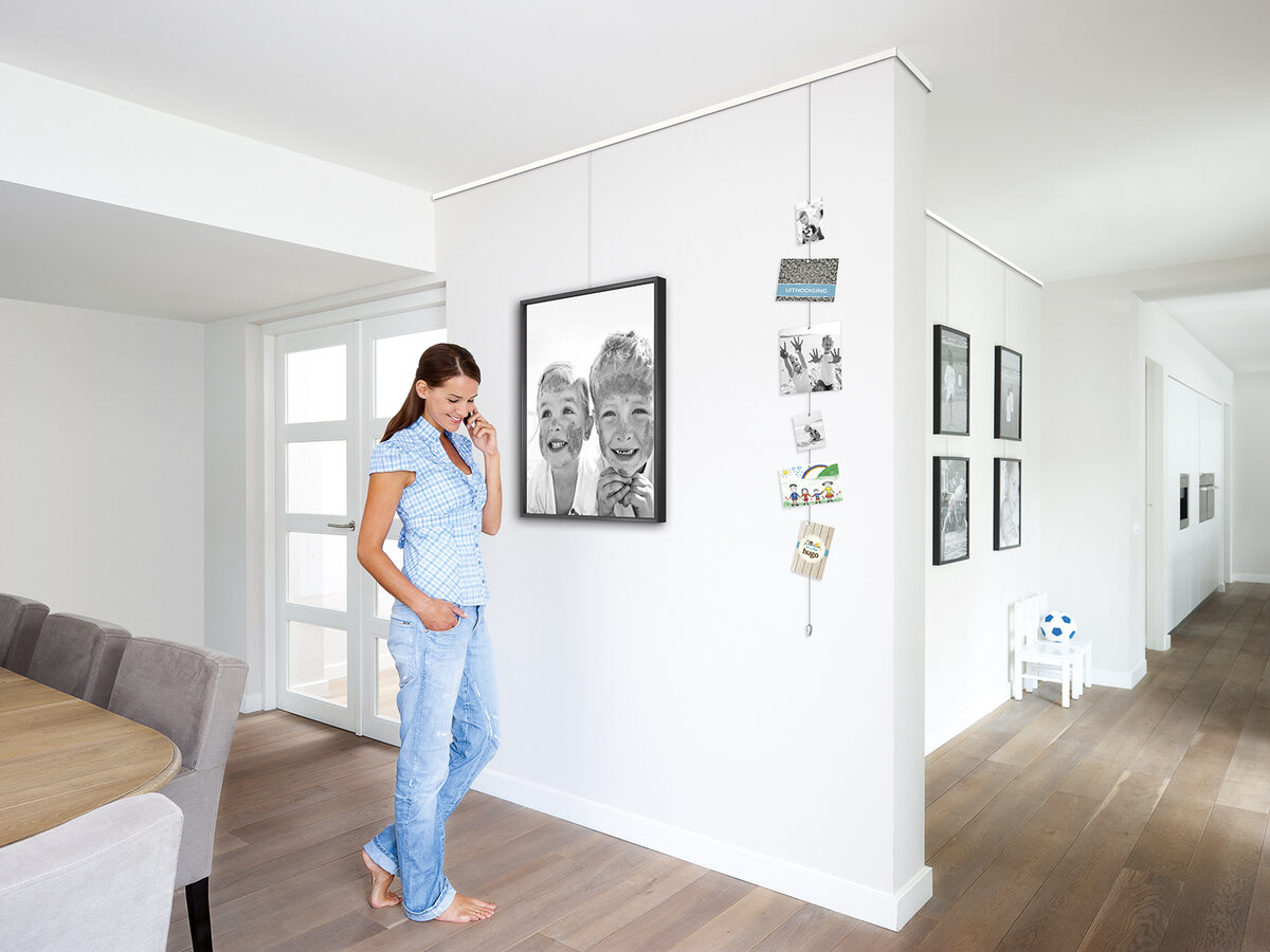 Ориентироваться следует на средний уровень глаз смотрящего, то есть центр картины (или композиции из картин) должен располагаться на высоте около 160-170 см. Но! Важно учитывать размер картины, компоновку на стене и ваш рост.