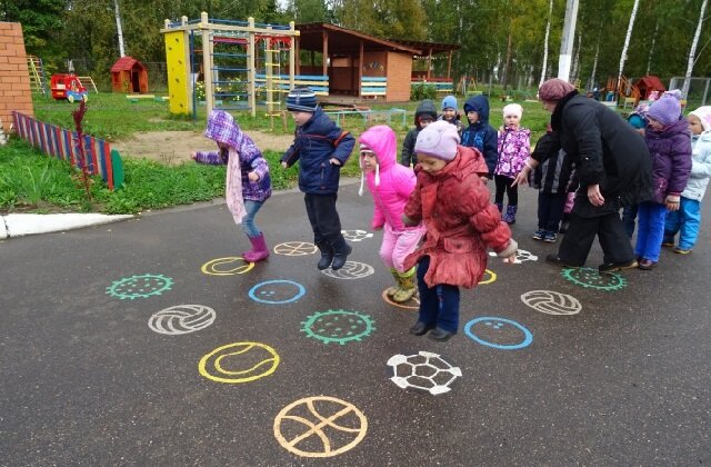 С детьми младшего возраста можно на улице поиграть в игру "Мир вокруг нас". Детям нужно давать разные задания. Например, попросите их назвать число кругов, которые они видят вокруг. Например, круглым будет солнце, клумба и т.д.