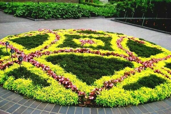 Под цветник выделяют определенную площадь, которую и разбивают на те самые модули - регулярные элементы, форма и размер которых могут быть любыми. И если размер зависит от общей площади цветника, то форма - исключительно от вас.
