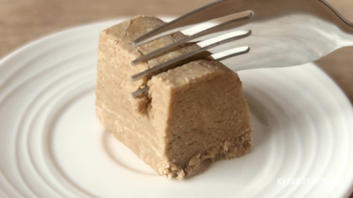 Если отщипнуть кусочек халвы и съесть - она уже будет очень вкусной, но лучше подождать. Халву накрываю пленкой, еще раз слегка разравниваю руками и ставлю в холодильник, чтобы она затвердела. Примерно, на это уходит три часа, иногда больше - зависит от температуры в холодильнике.