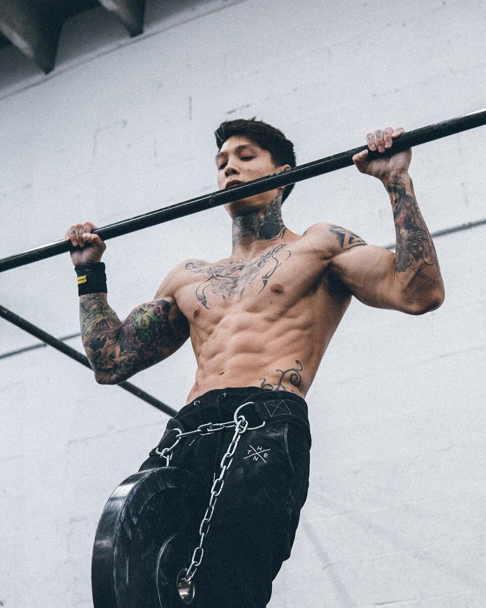 Чтобы прорабатывать части бицепса и брахиалис, Крис подтягивается разными хватами. Его тренировки состоят из подтягиваний прямым, обратным и параллельным хватом.