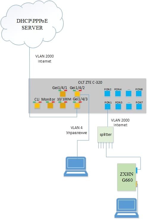 В рассматриваемой сети PON, на стороне клиента уславливается абонентский терминал марки ZTE– F660.