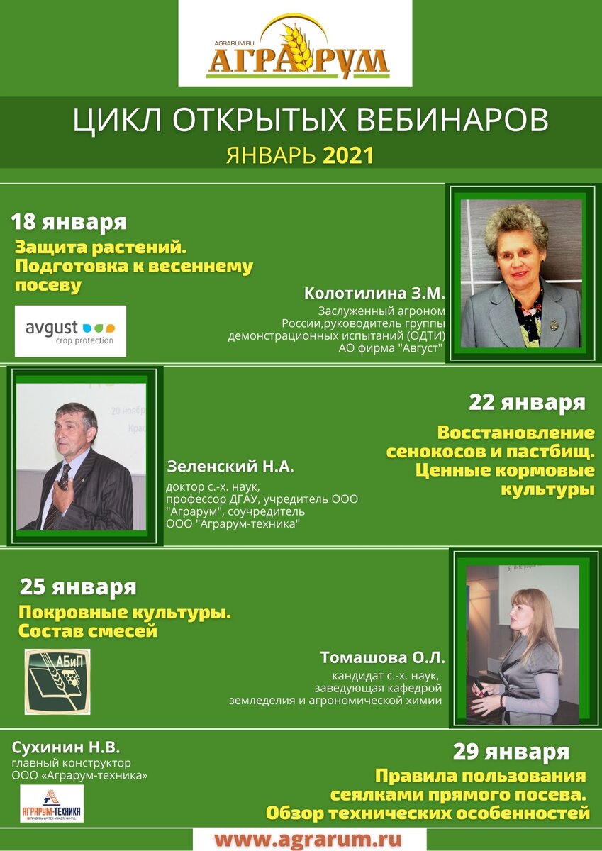 Приглашаем Вас, Ваших коллег и друзей принять участие в цикле открытых вебинаров от компании «Аграрум», посвященных современным агротехнологиям!