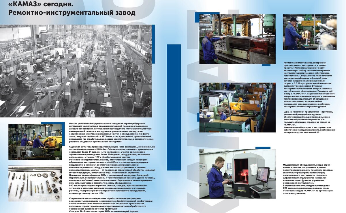 Ремонтно-инструментальный завод, ответственный сегодня за процесс обеспечения инструментом всего «КАМАЗа», – это специализированное предприятие с наличием достаточного парка универсального и специализированного оборудования высокого разрешения, с полным производственным циклом – от поковки до термической обработки (окраски) готовой продукции, включая все виды механической обработки.