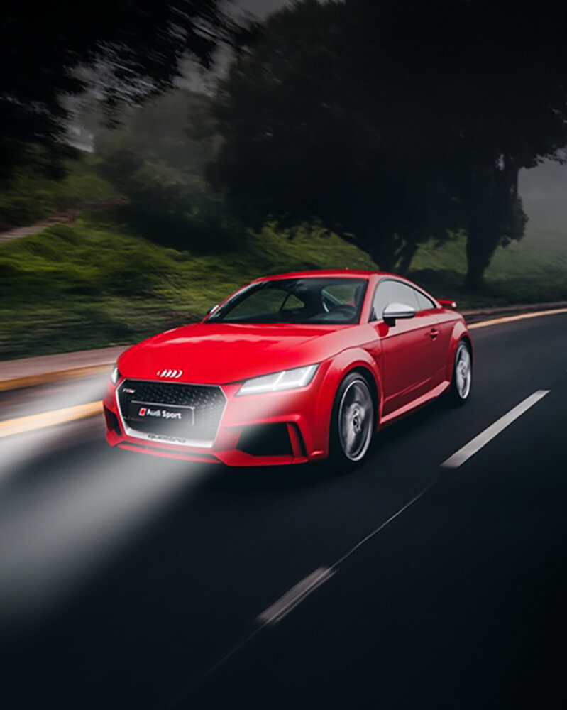 Дублируем наш слой со светом на вторую фару. Просто зажимаем клавишу Alt и ЛКМом перемещаем наш свет - это дублирует наш слой. Выставляем его на вторую фару и корректируем свет с помощью ластика. Чем ластик мягче - тем лучше. Наш эффект готов!