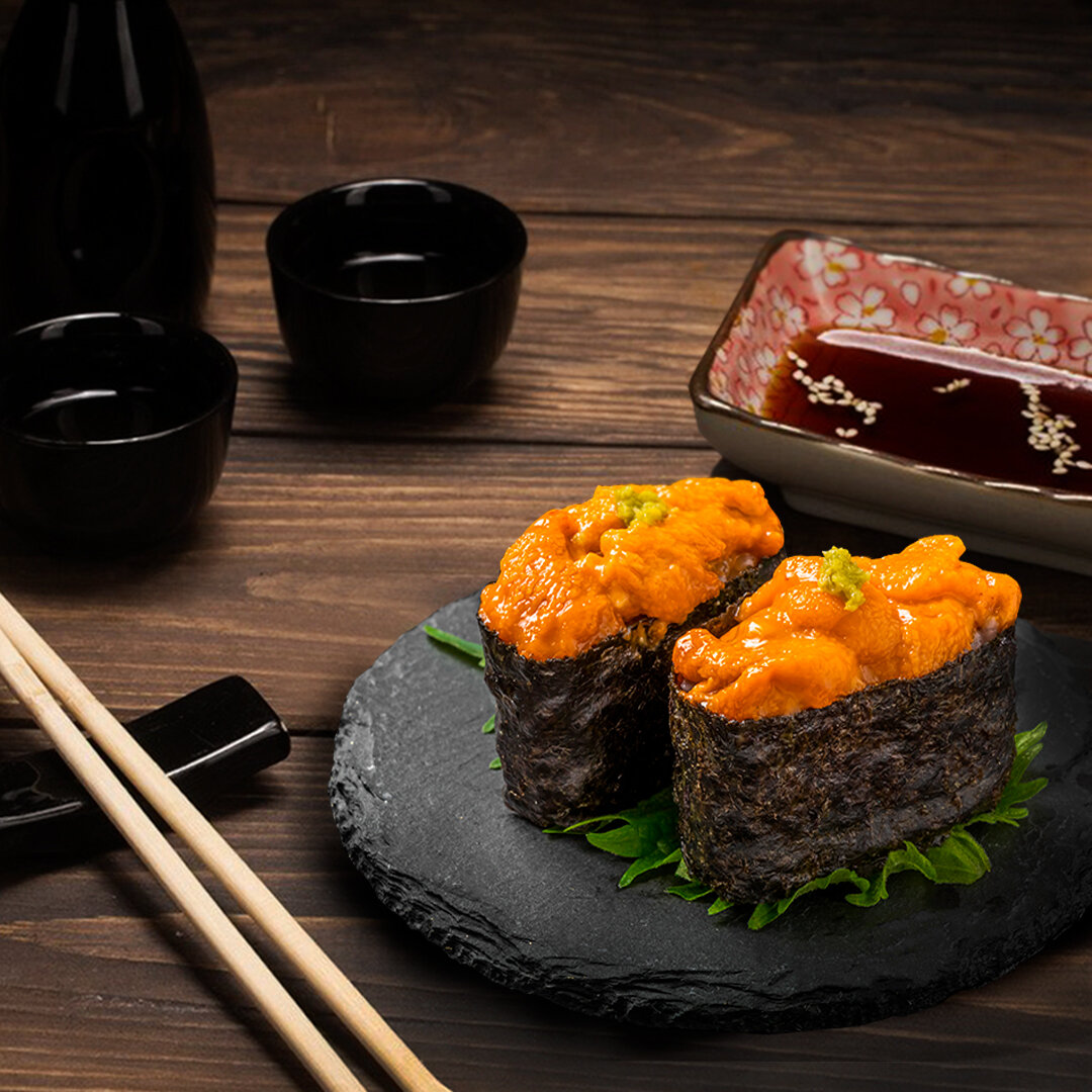 Предлагаем вам попробовать приготовить суши гункан дома с начинкой из икры морских ежей: это оригинальное блюдо с неповторимым сладковато-солоноватым вкусом обладает еще и массой полезных свойств, ведь не подвергнутая тепловой обработке икра морского ежа - это настоящий кладезь витаминов и микроэлементов. Кроме того, икра морских ежей является самым настоящим афродизиаком, поэтому гункан-суши могут стать отличным выбором для романтического ужина.