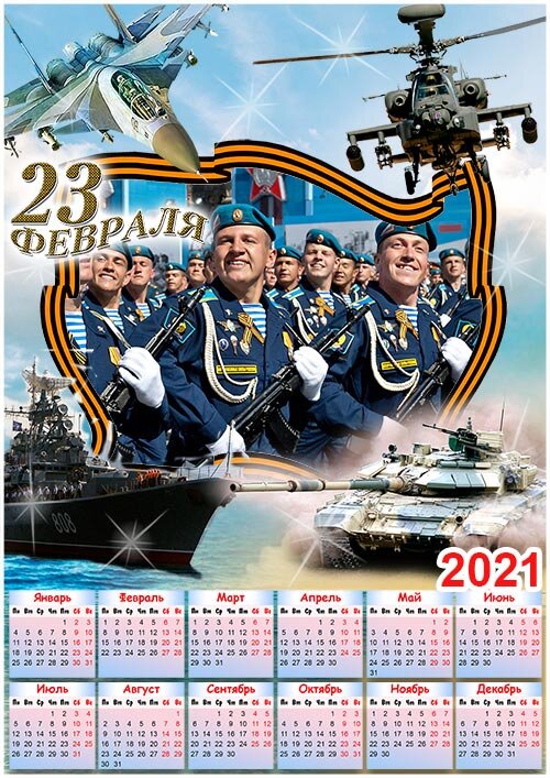 Календарь на 2021 год — 23 февраляПримечание: в архиве 2 размера календаря а3 и а4PSD + 2 PNG | 2480 x 3508 | 3508 x 4961 | 300 dpi | 174,55 MBАвтор: sergey1971