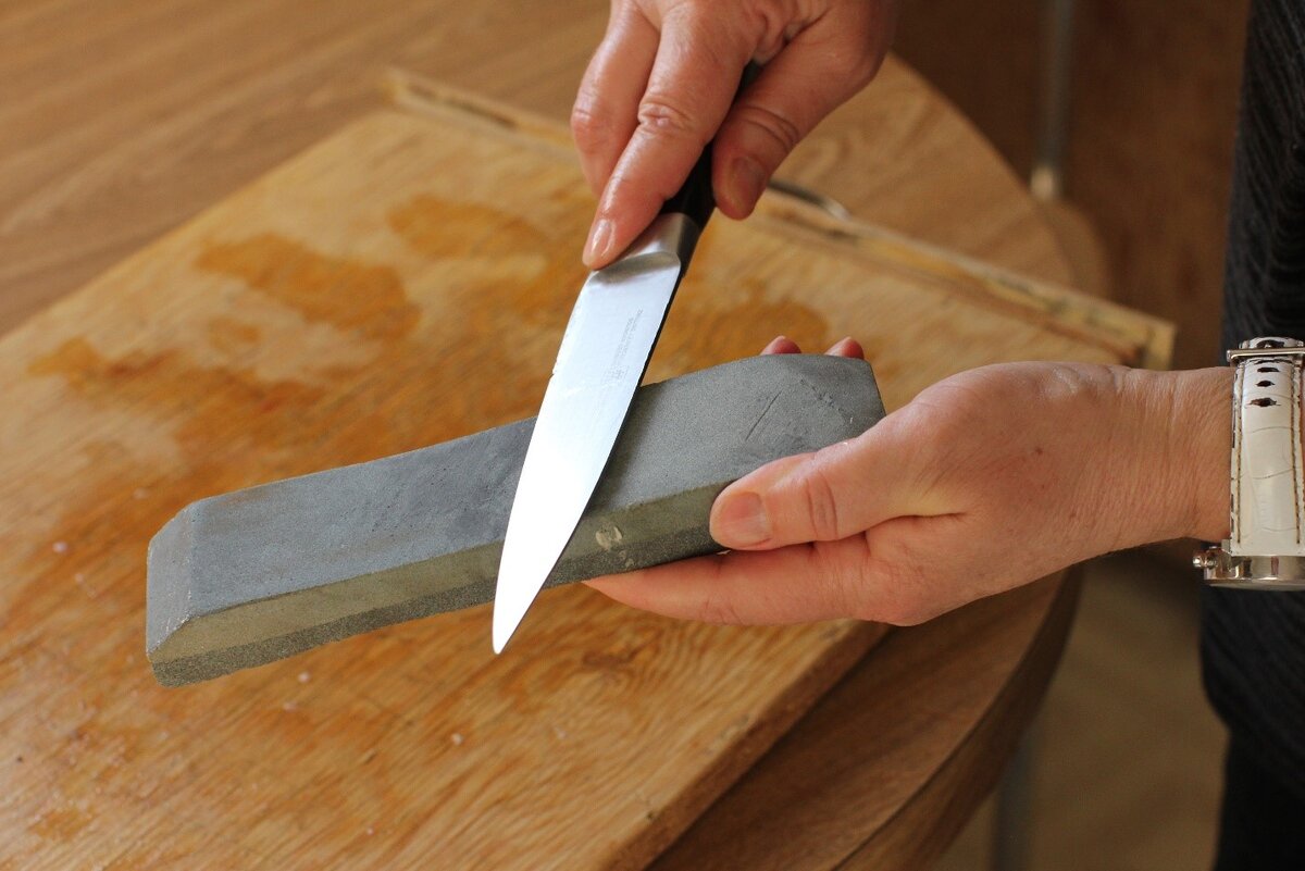 Основное, на что нужно заострить внимание, это подобрать правильный угол заточки и удерживать его по всей режущей кромке во время скольжения по бруску. Второе, необходимы плавные движения без излишнего надавливания. И третье, смачивать водой или мыльным раствором бруски для лучшего скольжения лезвия в процессе работы. А также чтобы микроскопическая пыль не забивалась в поры металла.