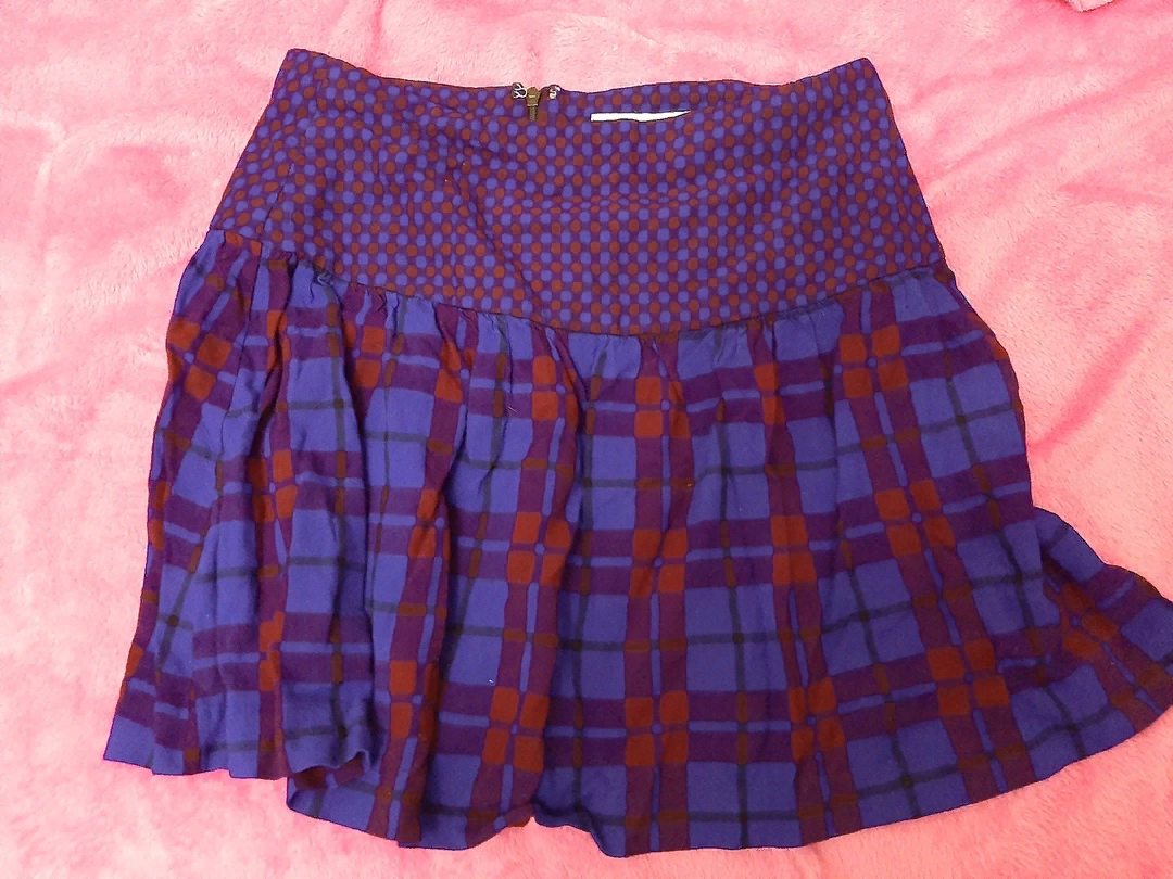 Вот эта юбка, она даже клетчатая. Не совсем похожа на стандартную клетчатую юбку.