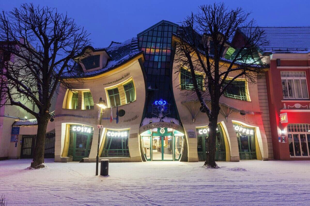 Это необычное строение — одна из достопримечательностей города Сопот в Польше. Кривой дом, как его называют, лишен прямых углов, а его архитекторы, вопреки подозрениям, вдохновлялись не «зеленой феей», а рисунками детских художников.