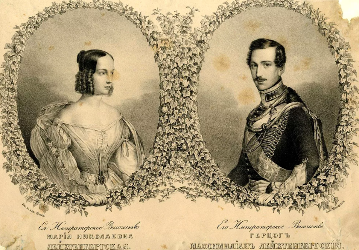 История – интереснейшая наука, полная вранья. Тут нет математических формул, нет и иных констант, на которые можно опереться. А есть лишь представления о том, как могло бы быть. Сплошь и рядом домыслы, и натягивание совы на глобус. Принялся я изучать историю любви герцога Лейхтенбергского Максимилиана и Марии Николаевны Романовой и много чего удивительного нашёл. Ну, для разминки. История знакомства молодых имеет несколько версий. По одной Мария была в Баварии, где и обратила внимание на Макса. По второй Макс приехал в Россию, для участия в манёврах, по приказу своего дяди баварского короля Людвига Первого. И так отличился на манёврах, что получил орден Андрея Первозванного да и остался служить новой родине в чине генерал-майора. Тут он и познакомился со своей будущей супругой.