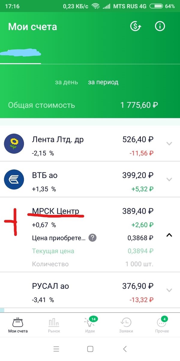 Сегодня я докупил в свой портфель акции МРСК Центр 1000шт за 386р