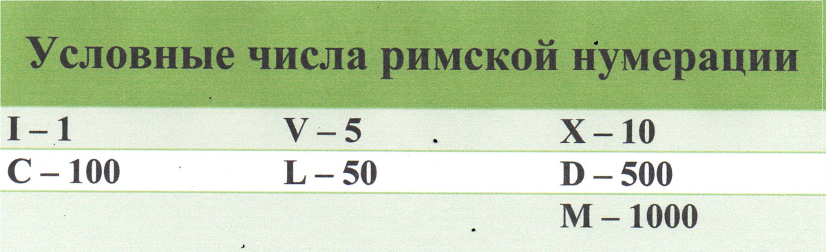 Попробуем разобраться в римской нумерации с помощью простой таблицы: