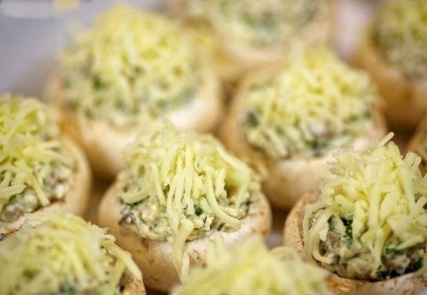 Шампиньоны с курицей и сыром