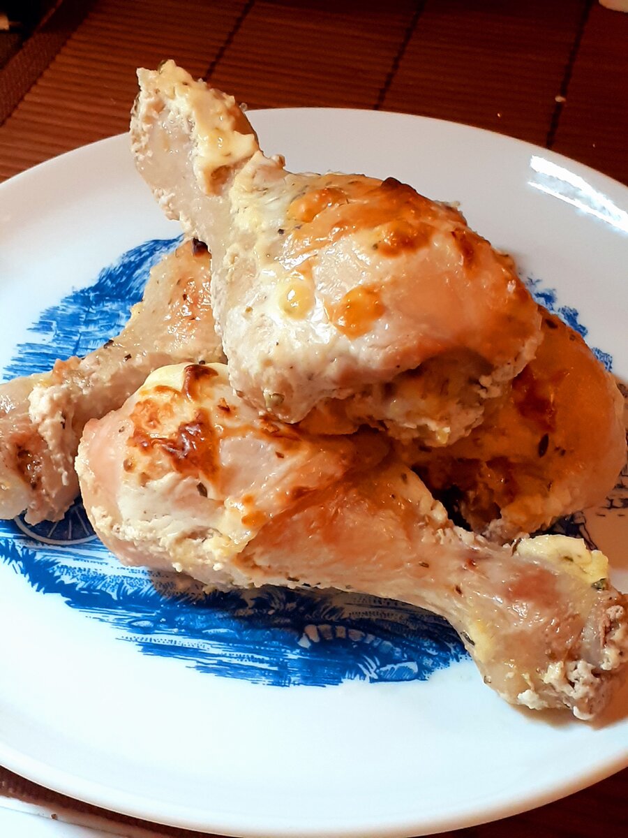 1. Куриную голень или кусочки курочки замариновать на 30 минут.