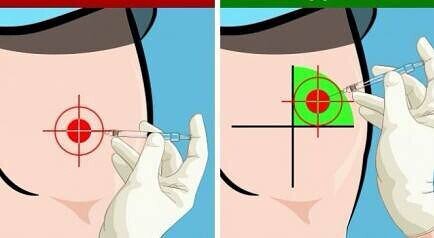 В остальные области делать укол категорически не рекомендуется, так как велик риск осложнений - могут повредиться нервы и артерии.