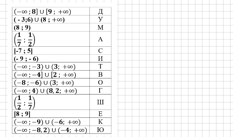 вывожу на экран пять неравенств. Задание - прислать мне WhatsApp пятибуквенное слово, необязательно имеющее смысл, которое получилось после решения пяти неравенств.