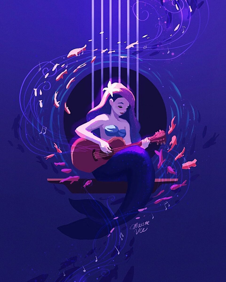 Данная работа была нарисована при участии Максин в челлендже "mermay", который был назван так в честь месяца мая (May). Обычно художники бросают себе вызов в каждодневном рисовании на какую-то тему, которая созвучна с месяцами.