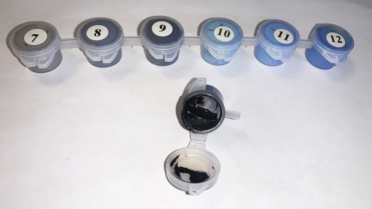 На праздниках вспомнила, что у меня лежит несколько нераскрашенных картин по номерам, и решила провести инвентаризацию, памятуя этот неприятный случай. Не зря. Рассматривая один из наборов, обнаружила, что состояние некоторых "номеров" весьма печальное. Вот, например, как выглядел тюбик с самой темной краской.