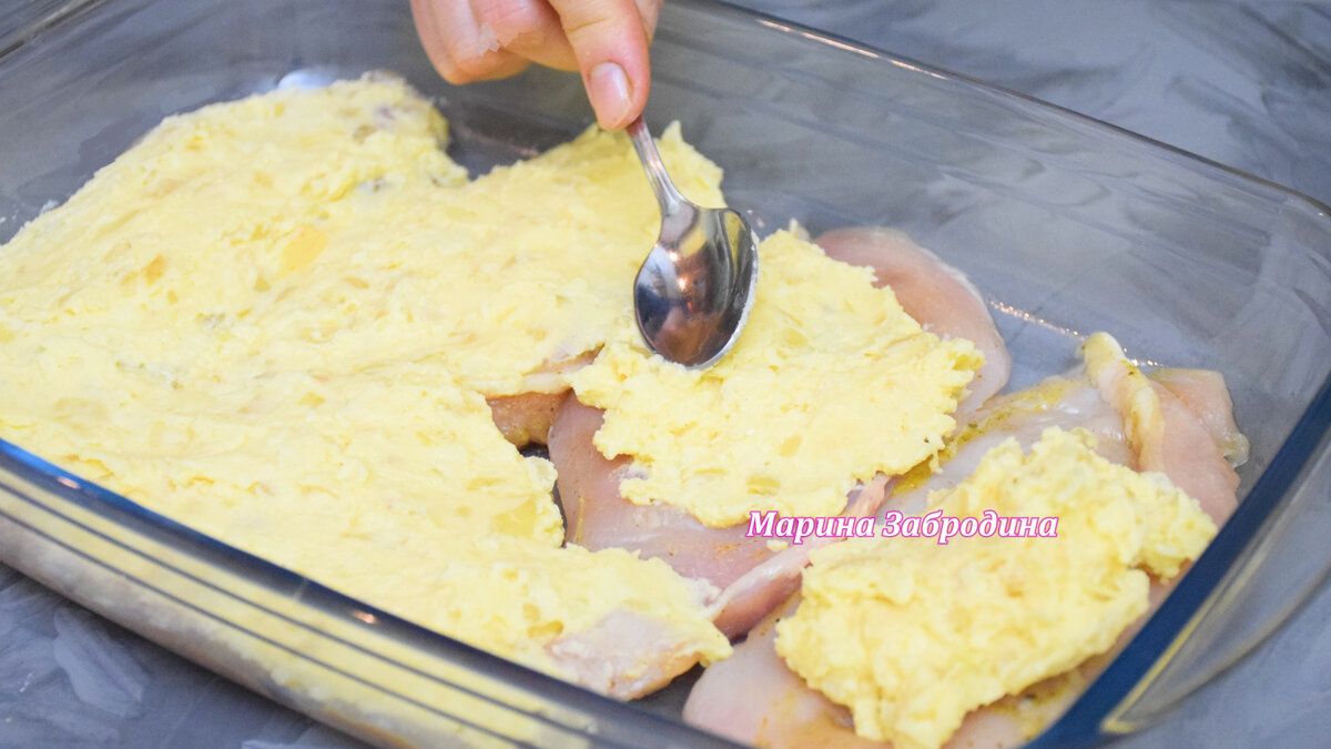 7. Разравниваем её по всей поверхности мяса.