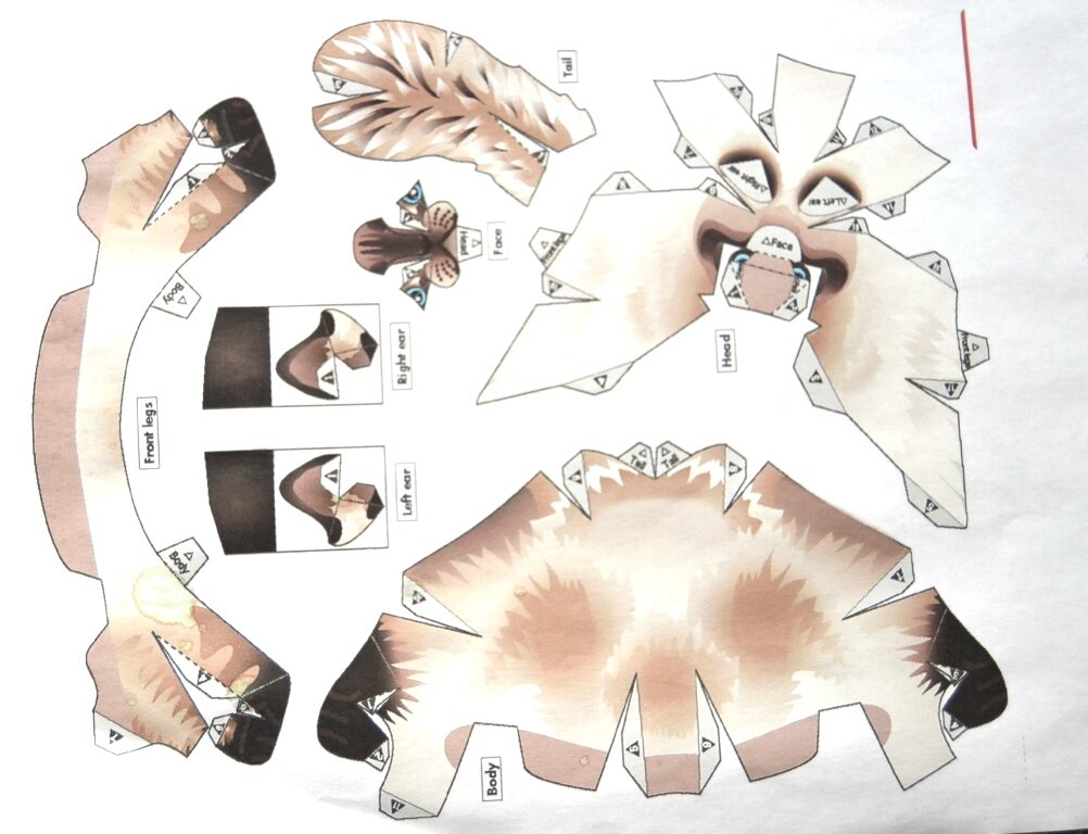 Я уже не помню, была ли фотография готовой кошки, но она была очень бы кстати, потому что понять как и в какую сторону что должно клеиться было сложновато.