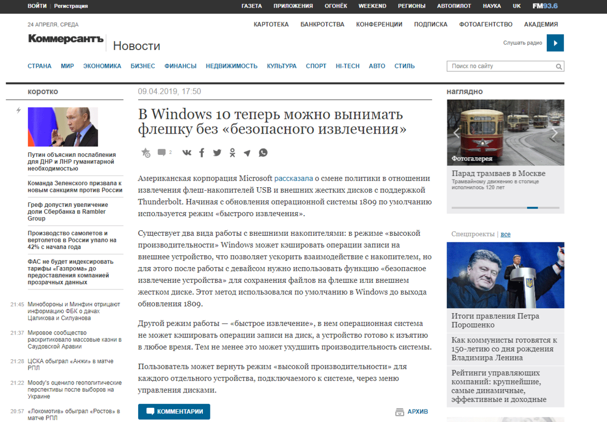 Теперь же отложенная запись по умолчанию будет выключена что позволит в любой момент просто так "безопасно" выдернуть флешку или внешний жесткий диск. Вроде бы все хорошо, если бы не упрямые факты.