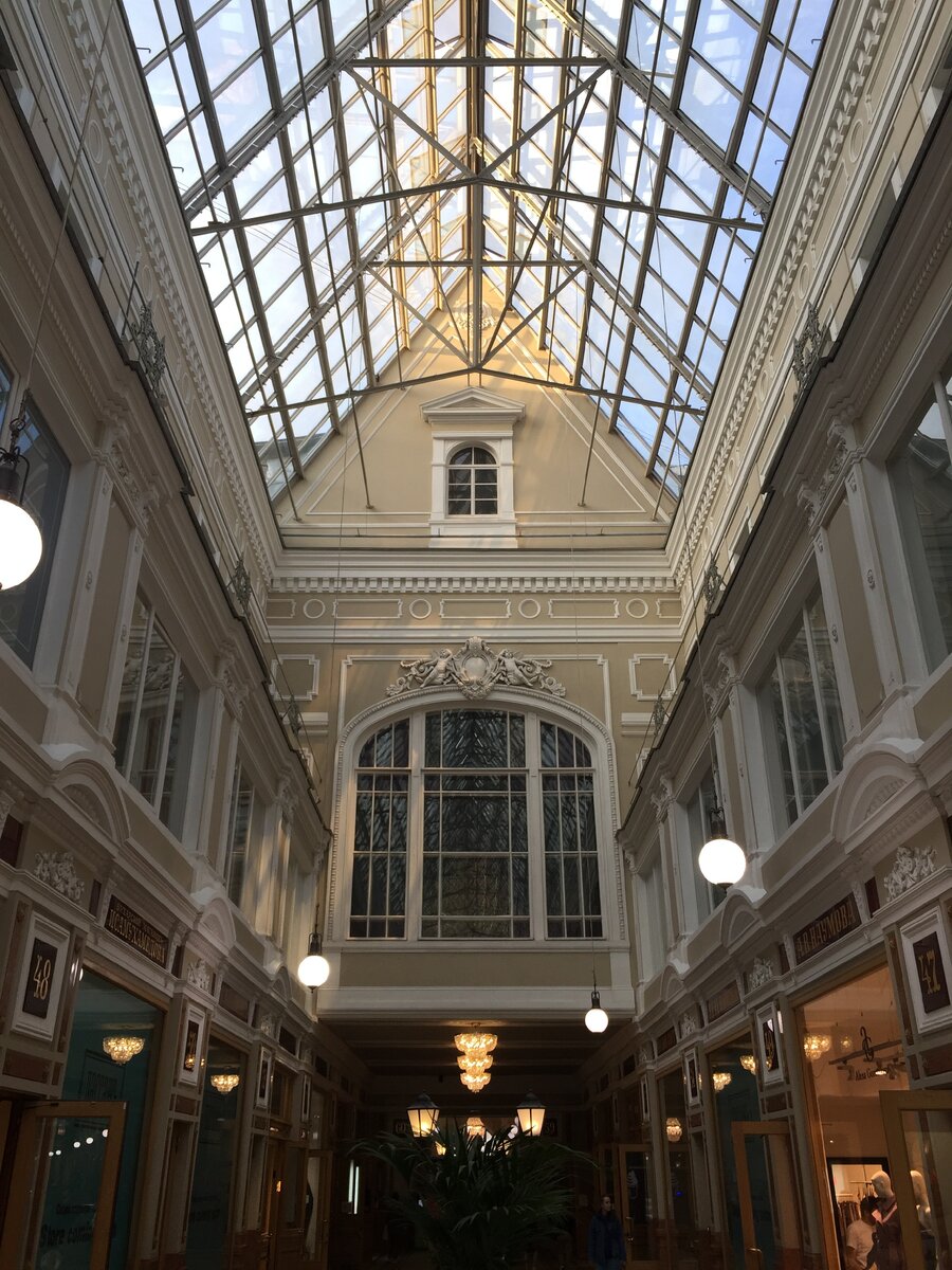 1. Итак, продолжаю о модерне. Самый фешенебельный торговый центр дореволюционного Петербурга - Пассаж на Невском проспекте, который я, кстати, не люблю. Здание торгового дома построено в 1846-1848 годах по проекту Рудольфа Желязевича. В 1900 году была масштабная реконструкция, и, вероятно, тогда появилась эта шикарная стеклянная крыша. В Пассаже существовал концертный зал (предполагалось, что граждане будут не только совершать здесь покупки, но и развлекаться), который с 1904 года с перерывами занимает театр имени Коммисаржевской, один из моих любимых.