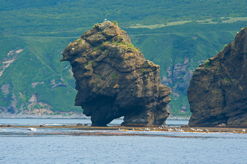 Бухта была такая глубокая, что не хватало якорной цепи закрепить судно, поэтому решили выбросить теплоход на скалы. Спутную волну из бухт не может разогнать даже Океан. Теплоход так и стоит на скалах, как вздыбившийся конь, памятником самому себе.