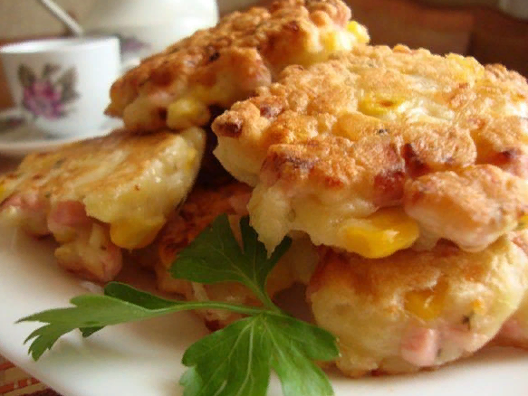 Приветствую вас, мои дорогие. Ну что, оливье съеден, остальное тоже потихоньку исчезает из холодильника. А мне вот сегодня захотелось драников. Причем не классических, а с окороком и консервированной кукурузой. Такие, что ешь и не можешь оторваться.