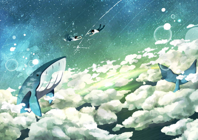 Трамвай исчез! Артуру показалось, что всё вокруг залил свет, буквально на мгновение, а потом мир изменился. Хотя нет, мир как раз остался прежним, но его условности окончательно перестали иметь хоть какое-то значение. Трамвай исчез. Артур и Криста сидели на спине гигантского синего кита, медленно и лениво таранящего мордой облака.