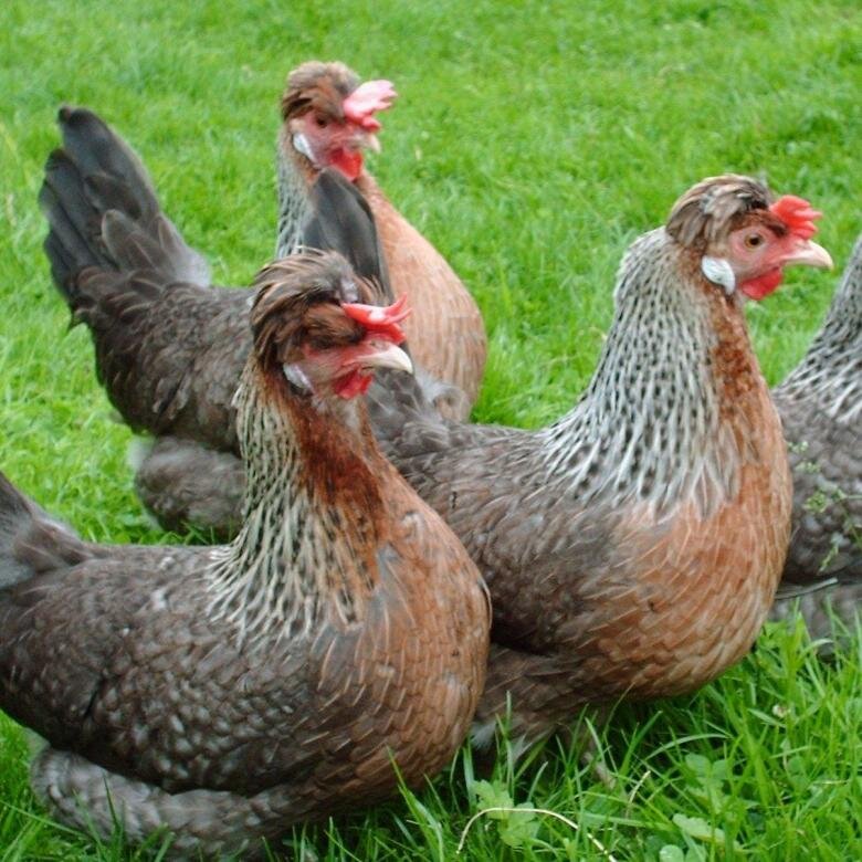 -Породо мясо-яичного типа. Мясо вкусное и нежное. К 6 месяцам несушки весят около 2 кг, петухи до 3,5 кг.