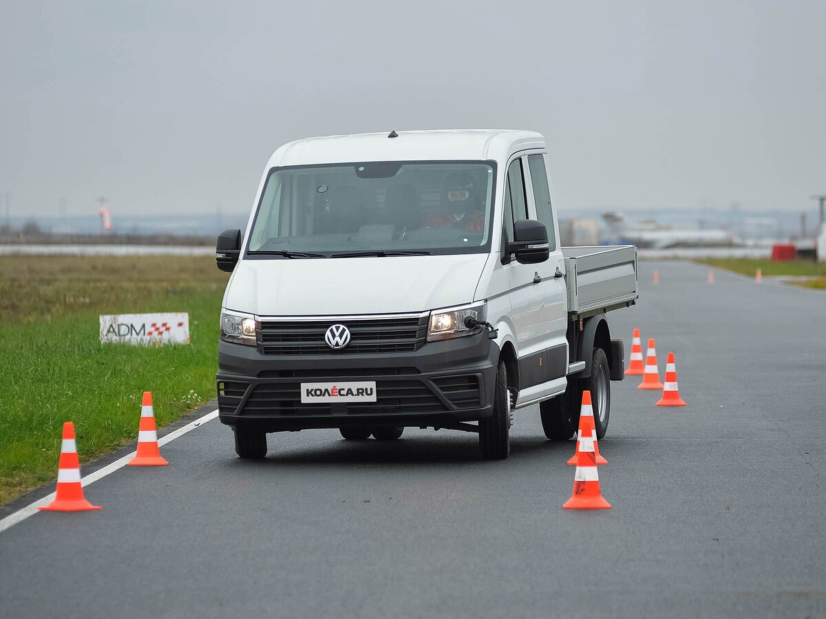 Думаю, сначала надо хотя бы немного рассказать об испытуемом. Гнать на полигон КамАЗ нам показалось сложным, за что скажем спасибо нашему законодательству (не везде можно проехать, нужно делать карту для тахографа, так что одной категорией в правах не обойдёшься). Поэтому мы решили взять более удобный для города автомобиль – Volkswagen Crafter. Его премьера состоялась три года назад, но всё-таки нам он интересен. В первую очередь тем, что он – типичный грузовик, как мы и хотели. А во вторую, Crafter – грузовик с претензией на легковую управляемость. Ну, может, не совсем на легковую, но на «минивэнную» точно. Тут и руль острее, и электронных помощников, которые не дадут нам убиться на полигоне, много. Особая надежда у нас на систему стабилизации ESC, которая и должна помочь пройти этот тест.