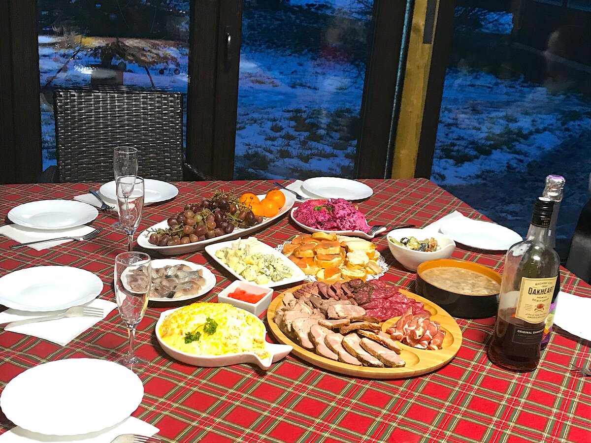Затем был просмотр старых фильмов. Ну а к вечеру мы организовали стол, так как еды осталось много. Еще брат замариновал 31 декабря свинину, чтобы приготовить на углях, но в новогоднюю ночь она была бы лишней, а вот 1 января на ужин самое то, что надо.