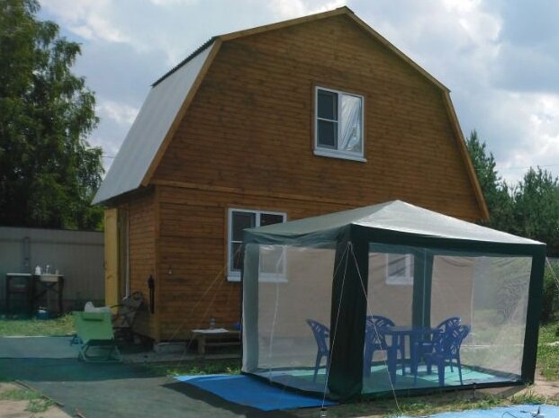 После строительства дома, туалета и установки каркасного бассейна появилась необходимость организации места для отдыха. Один сезон мы использовали легкую купленную палатку. От сильного ветра к концу лета она порвалась, а один раз, ее вырвало и ветром гоняло по всему участку так, что погнулись каркасные трубки и пострадали деревья. Начали поиск готовых решений, но те что были доступны по цене, не устраивали своими размерами и материалом, а которые устраивали, были недоступны финансово. Поэтому, как и многие дачники, решили построить ее сами. В качестве материала использовали дерево, т.к. домик и туалет у нас были деревянными. На бумаге согласовали примерный чертеж с размерами, который перенесли в одно из приложений, позволяющее проектировать различные постройки. Удобство планировщика в том, что он сразу проводит расчет необходимых материалов. Первым делом определились с местом расположения, выбрали центральное место возле дома и бассейна. Вбили колышки, натянули нити для выставления кв