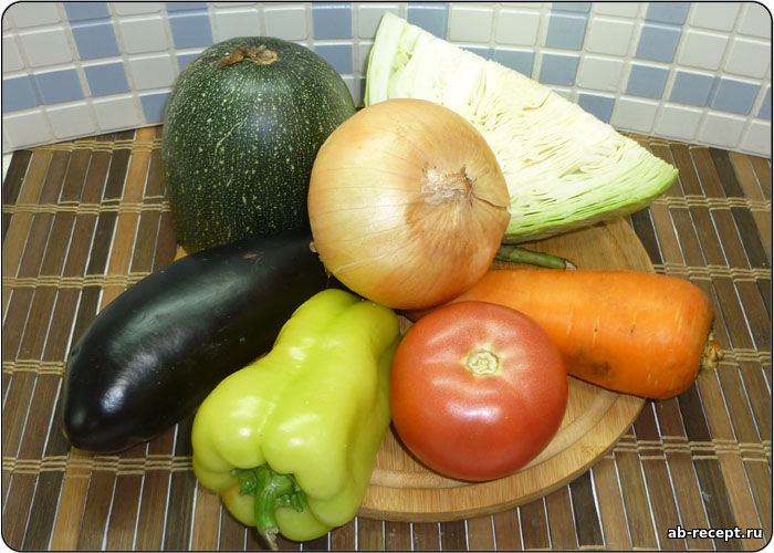 Блюдо готовится из баклажанов, помидоров, капусты, болгарского перца и моркови. В итоге получается отменная закуска, которую вполне можно есть как самостоятельное блюдо либо в качестве гарнира к разным блюдам. Кроме того, она прекрасно хранится длительный срок в погребе.