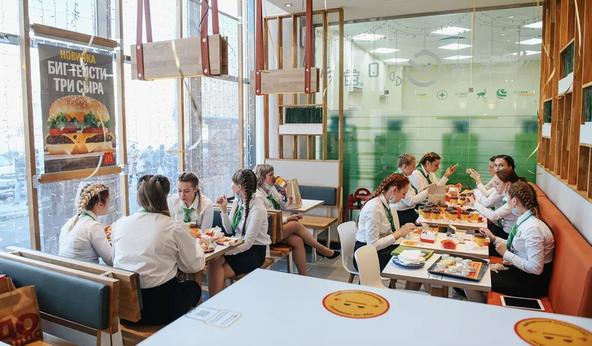 В торговом центре «Березка» залы фастфуда и банка объединили общей зоной ожидания и коворкинга. Это единое пространство ресторана быстрого питания и банка, которое дало возможность брендам проанализировать опыт совместного использования пространства и распределения потоков потребителей. Как сообщил первый заместитель Председателя Правления Сбербанка Александр Ведяхин: «Стратегическое партнерство