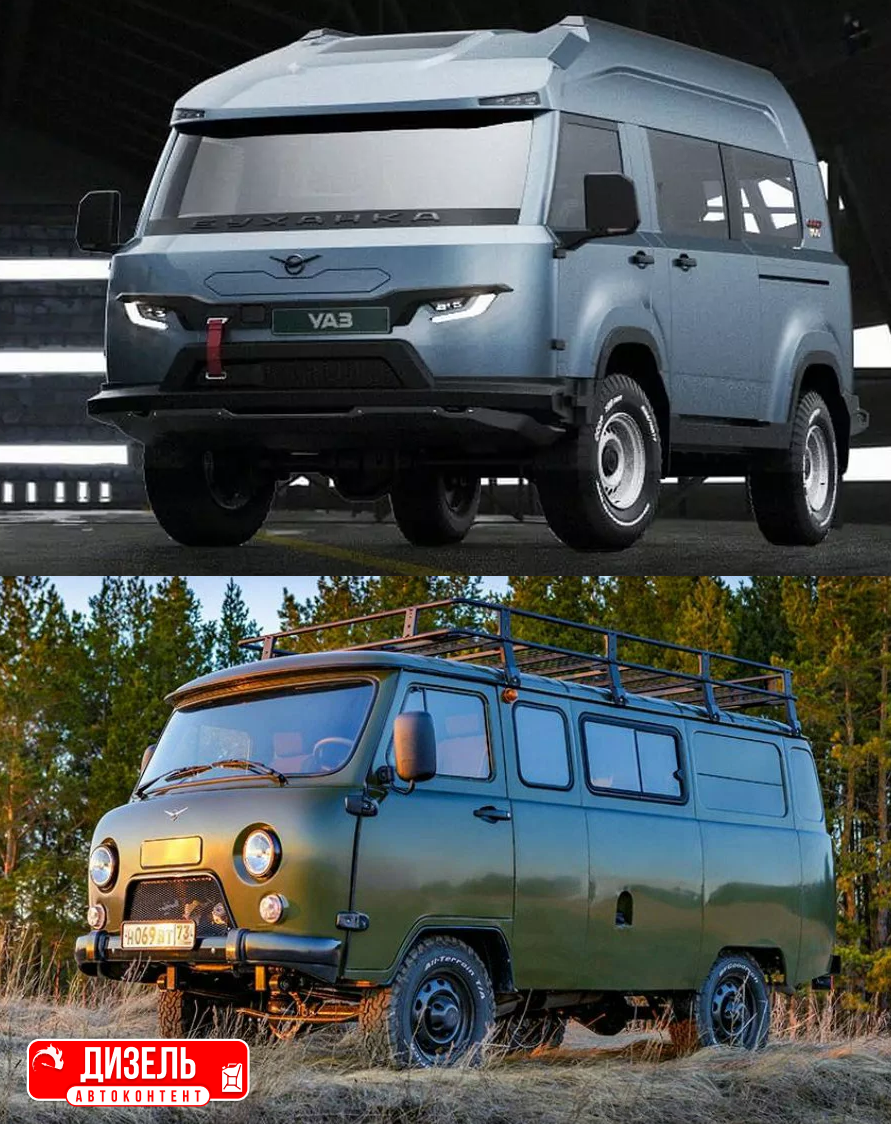 На изображениях видно, насколько сильно изменился дизайн. Огромные зеркала, узкая светодиодная оптика, расширенная колея и модный обвес. На фото ниже я сопоставил нынешнюю версию и будущую, просто посмотрите какая огромная разница во внешнем виде. «Буханка» выпускается с 1965 года практически без изменений. Это действительно уникальный автомобиль, который, на мой взгляд, почти не имеет конкурентов. Ну кто ещё может похвастаться фургоном-внедорожником?