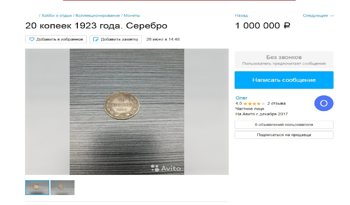 Итак, начнём с попроще))) Продавец предлагает монетку всего-навсего за миллион. Пустяки какие, да?