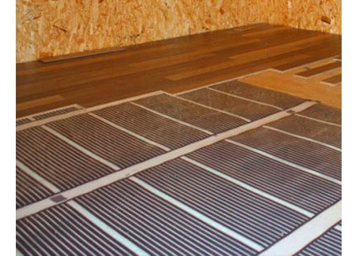 Пленку «Теплый пол» выпускают в виде рулонов длиной до 7 метров. Их можно нарезать ножницами по пунктиру в зависимости от потребностей. Монтируется на бетонную, гипсокартонную, древесную поверхность, в открытых участках, но не там, где будет стоять шкаф и диван.
