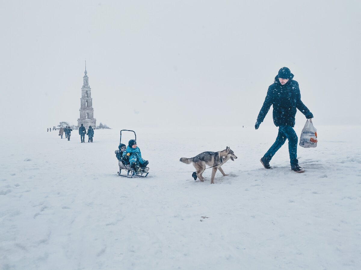 Я бросил свою «ласточку» и решил немного пройтись до набережной и посмотреть на известнейшую затопленную колокольню, но уже зимой.