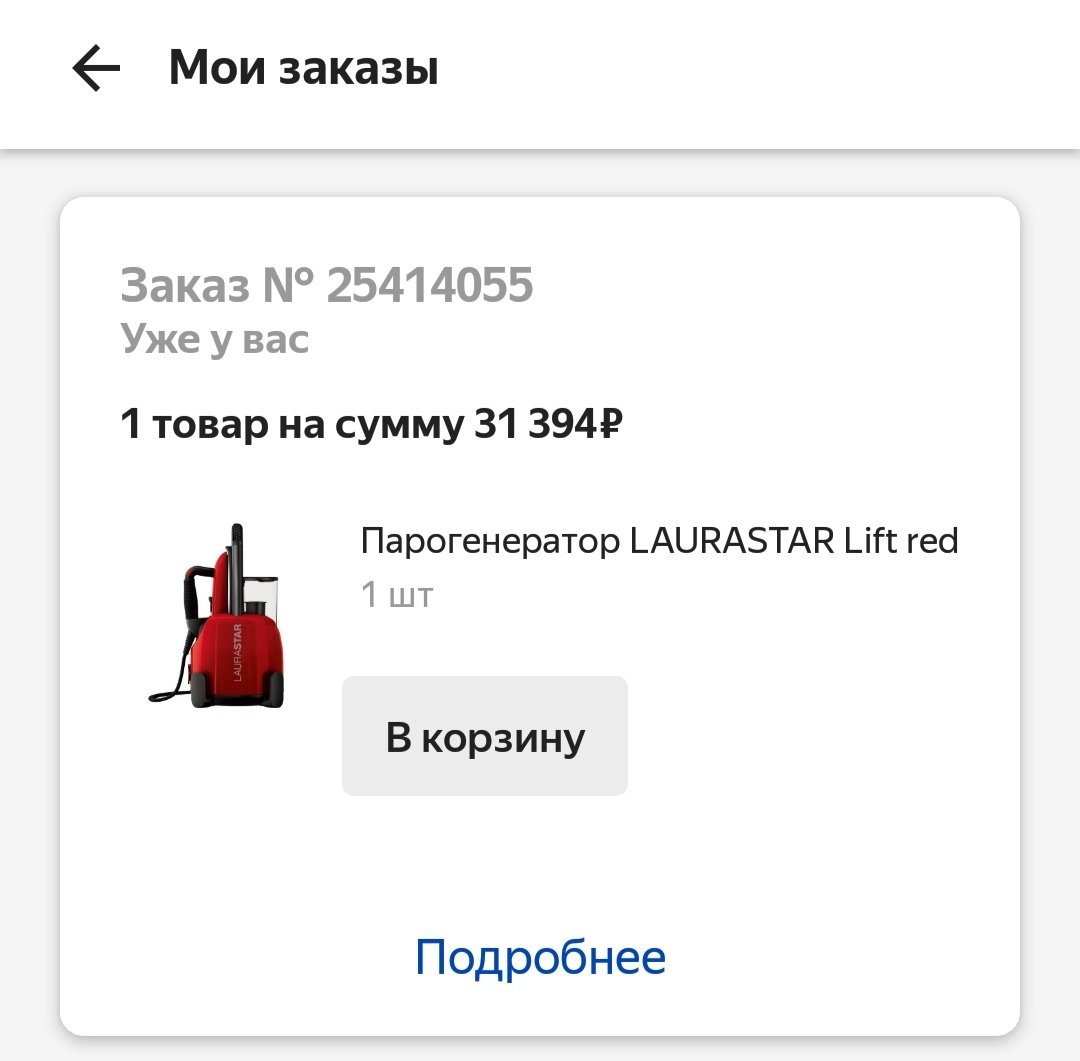 Ранее вы обращались по поводу товара "Парогенератор LAURASTAR Lift red".